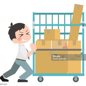 重い荷物を載せた台車を動かす瞬間が